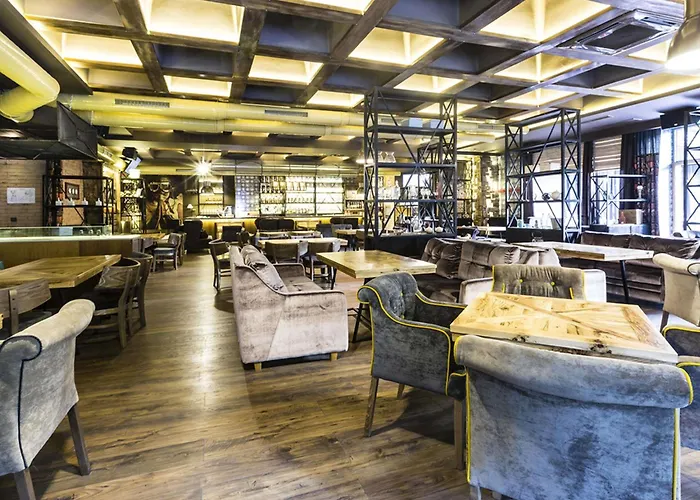 This Plovdiv hotel invites guests to have a drink at a lounge bar.